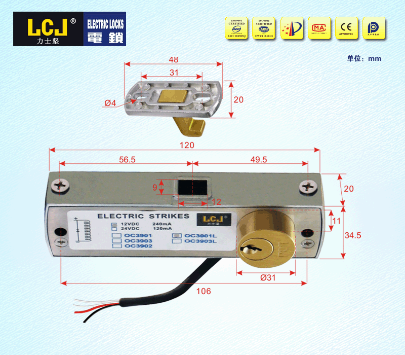 OC平开抽屉电锁是按照《OC平开抽屉电锁》标准自主设计开发,拥有实用新型、外观等专利。 |