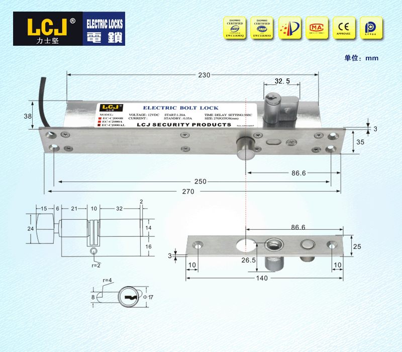 EC电插锁是按照《电插锁》标准自主设计开发,拥有实用新型、外观等专利。 |